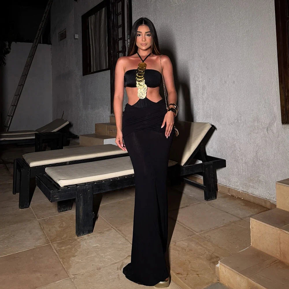 שמלת מקסי מחטבת עם גב פתוח דגם פריז